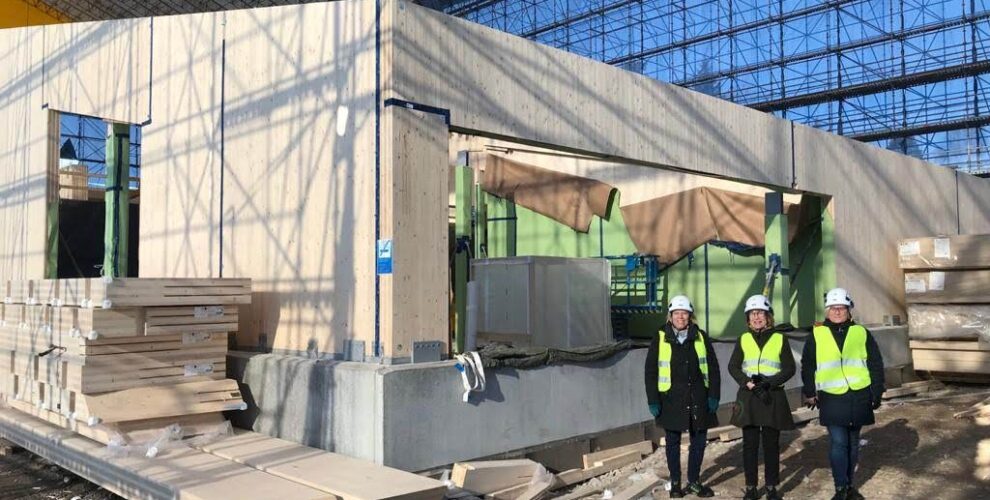 Ensimmäinen vierailu uuden koulun työmaalla sitten tammikuun. Sääsuojan alla nousee kaunis koulurakennus!